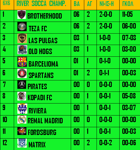 2η αγωνιστική RIVER SOCCA LEAGUE 6X6 SUMMER 2026