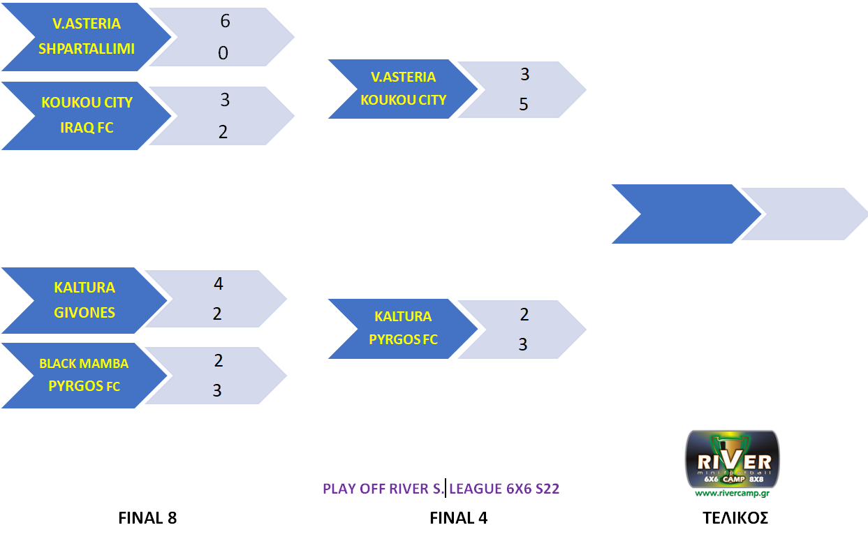 Οι Πυργιώτες προέρχονταν από μια μεγάλη πρόκριση και δεν ήθελαν και πολύ να επαναλάβουν μια μεγάλη νίκη που τους φέρνει ένα βήμα από τον τελικό! Εκμεταλλεύτηκαν και τις απουσίες των χειμερινών πρωταθλητών αλλά έτρεξαν και μόχθησαν για να πάρουν αυτό που τους άξιζε. Είχαν 5 αλλαγές απέναντι σε καμία της KALTU που δεν είχε και τον τερματοφύλακά της. Για άλλη μια φορά ο Μούτσος ήταν κομβικός για την εξέλιξη του παιχνιδιού με δυο παλικαρίσια γκολ στα κρίσιμα σημεία του αγώνα (19, 44′) Ο Σοφοκλής Τσούμπας στο 28′ έβαλε το λιθαράκι του στην νίκη ενώ όλα τα ξαδέλφια Τσούμπας ( 5 για την ακρίβεια) φρόντισαν να περιορίσουν τους κινδύνους . Ο Βλησσίδης κατάφερε να σκοράρει 2 γκολ και να κρατήσει κάποιες ελπίδες για την ομάδα του Γιαννόπουλου που θέλει να εμφανιστεί με άλλο πρόσωπο στον επαναληπτικό της Τετάρτης.
