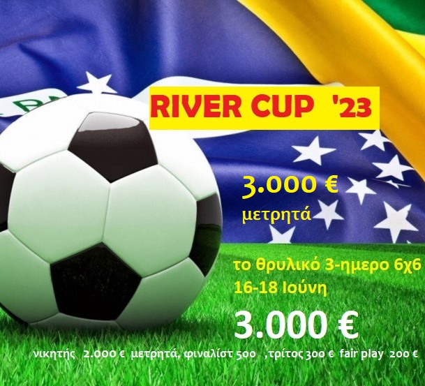 Το θρυλικό ΤΟΥΡΝΟΥΑ ΠΟΔΟΣΦΑΙΡΟΥ RIVER CUP 6Χ6 θα πραγματοποιηθεί για δέκατη έβδομη συνεχή χρονιά το τριήμερο Παρασκευή 16 -Σάββατο 17-Κυριακή 18 Ιουνίου 2023.