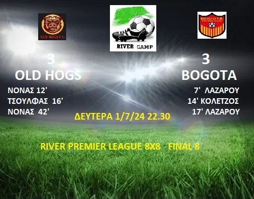 ‘Απιαστο σουτ από τον Νόνα στο 42’ από πλάγια και 25 μέτρα μακριά στέλνει την μπάλα στο πλεκτό και την ομάδα του στους 4. Μια φάση που έκρινε ένα συγκλονιστικό ντέρμπι με OLD HOGS και BOGOTA να είναι πολύ κοντά σε όλο το παιχνίδι και την αγωνία να κρατάει καλά. Οι “Λατίνοι” προηγήθηκαν τρεις φορές στο σκορ γνωρίζοντας ότι θέλουν μόνο νίκη για πρόκριση με όλα το γκολ στο πρώτο μέρος (3-2) Στην επανάληψη οι OLD HOGS ανέβασαν απόδοση και κατάφεραν να φτιάξουν ευκαιρίες με τον κεραυνό του Νόνα να πετυχαίνει ίσως το γκολ της χρονιάς…
