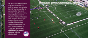 Μεγάλη επιτυχία για την Ελλάδα που φέρνει το Champions League στο Ρέθυμνο φέτος τον Οκτώβρη! Το River Camp έχει το επίσημο χρίσμα της διοργάνωσης  ISF και στέλνει 4 ομάδες στο τουρνουά μέσα από το φετινό  πρωτάθλημά του . BLACK MAMBA, SHPARTALLIMI, TEPHANTOMS και LAS PULGAS θα δώσουν το παρόν στην κορυφαία αυτή διοργάνωση που οργανώνεται στην πατρίδα μας για πρώτη φορά . Η COSMOTE έχει αναλάβει τα τηλεοπτικά δικαιώματα από το Ρέθυμνο σε μια ποδοσφαιρική γιορτή όπου  αναμένονται 80-100 ομάδες από 30 διαφορετικές χώρες!!!