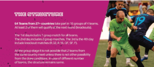 To φορμάτ της διοργάνωσης ακολουθεί την εικόνα του Champions League με ομίλους των 4 ομάδων και τις δυο πρώτες να προκρίνονται στις 32 σε αγώνες νοκ άουτ την τρίτη και την τέταρτη μέρα της διοργάνωσης