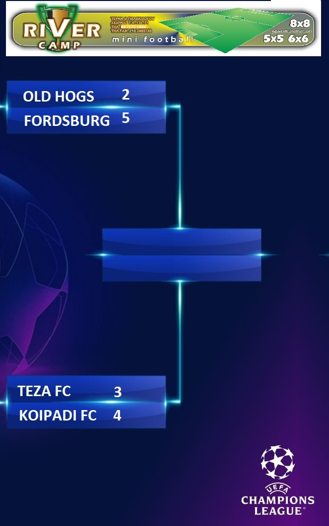 Το καλύτερο φετινό της παιχνίδι στο κρίσιμο φινάλε του πρωταθλήματος, επιφύλαξε η FORDSBURG ανατρέποντας τα προγνωστικά! Με οδηγό τον εξαιρετικό αρχηγό της Βέττο που πέτυχε χατ τρικ, οι “γερμανοί” πάτησαν γκάζι στο δεύτερο μισό εξασφαλίζοντας το πάνω χέρι στην υπόθεση πρόκριση. Οι OLD HOGS μπορεί να ξεκίνησαν καλύτερα (γκολ Μπούκη στο 3΄) αλλά αιφνιδιάστηκαν από την αντίδραση των μπλε μένοντας πίσω στο σκορ μετά από την ισοφάριση, με γκολ του Βέττου στο 18′ 26′ 33′, Γεωργόπουλου στο 31’και Πουλέτη στο 37′. Ο Κοττάκης μείωσε απλά στο 39′ λίγο πριν οι ομάδες ετοιμαστούν για την ρεβάνς όπου οι OLD HOGS θέλουν νίκη ή ισοπαλία για να πάνε στα πέναλτι…