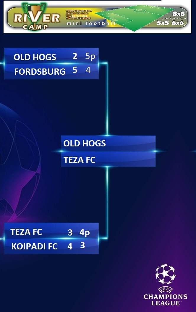 Συγκλονιστική πρόκριση για τους OLD HOGS που βρέθηκαν πίσω στο ημίχρονο με 0-2 με γκολ των Μυλωνά και Βέττου και μιας FORDSBURG ικανής να κάνει το 2 στα 2. Η επανάληψη βρήκε τους OLD HOGS να πιστεύουν στην ανατροπή και αφού μείωσαν με Παριανό στο 42′ ισοφάρισαν στο 51′ με τον Τζανή, στέλνοντας την σειρά στα πέναλτι! Εκεί που πήραν την πρόκριση εν μέσω έξαλλων πανηγυρισμών